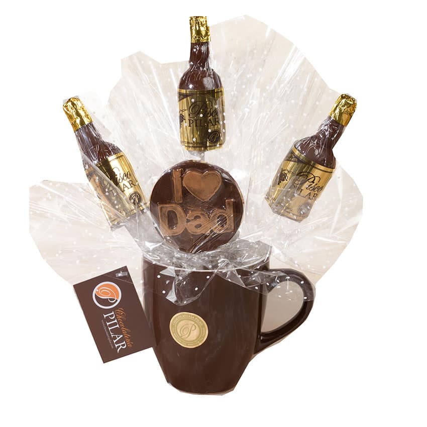 TAZA CERÁMICA CONSTA DE 4 PALETAS I LOVE DAD, ELABORADO EN CHOCOLATE REAL MÍNIMO 57% CACAO